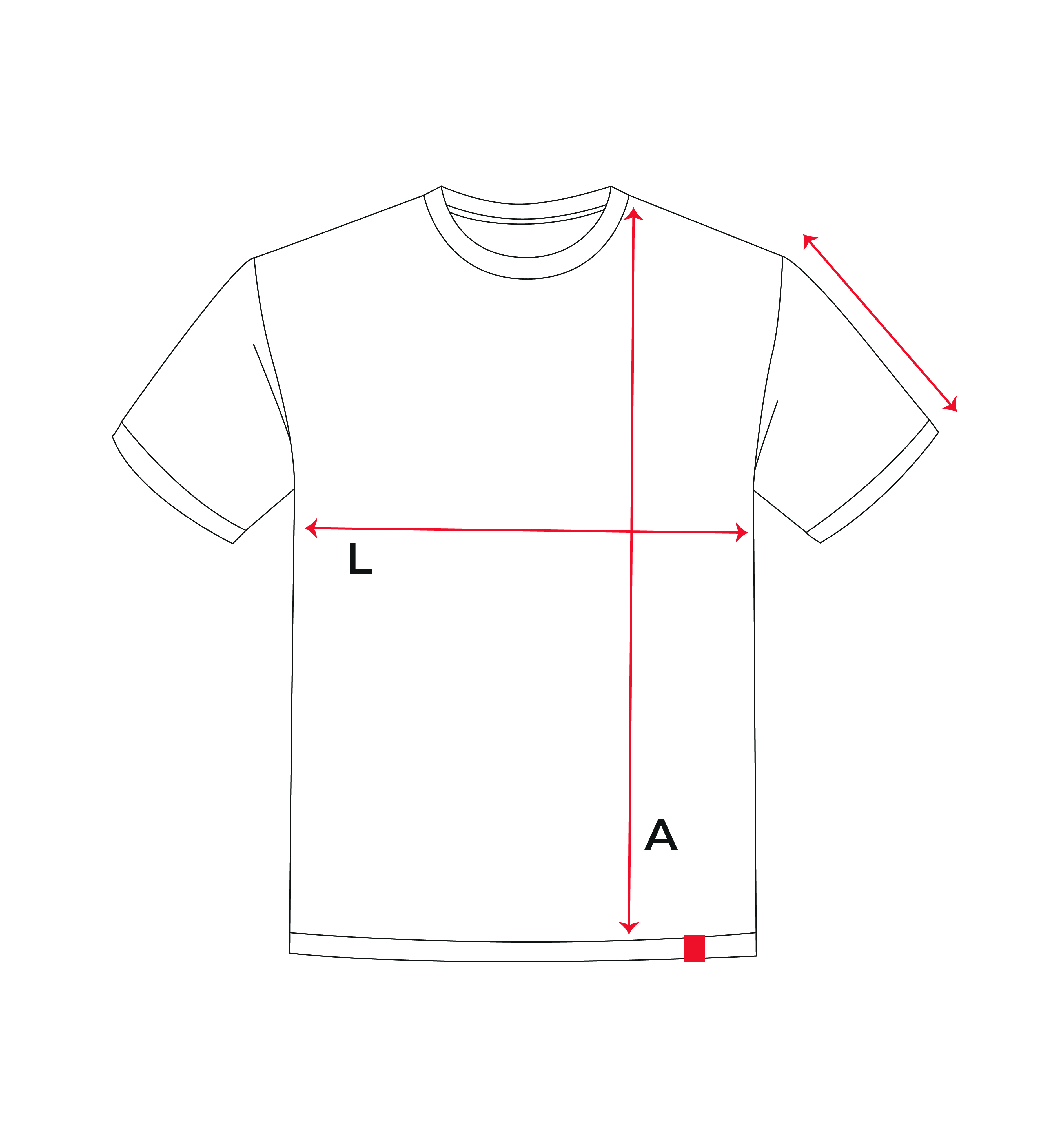 Pegue uma camiseta que você já tem e tire as medidas de altura e largura, conforme nosso quadro referencial.